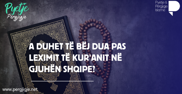 Pyetje: Selam alejkum. Jam një motër që kam filluar të lexoj Kuranin në gjuhën shqipe. Jam në përfundim të Kuranit. Disa më thonë se kur të përfundoj duhet të shkoj të më këndoj hoxha dua, e disa më thonë jo, duhet vetë. S’di çfarë të bëj, ju lutem më këshilloni se çfarë më duhet të bëj kur të përfundoj leximin e Kuranit në shqip?