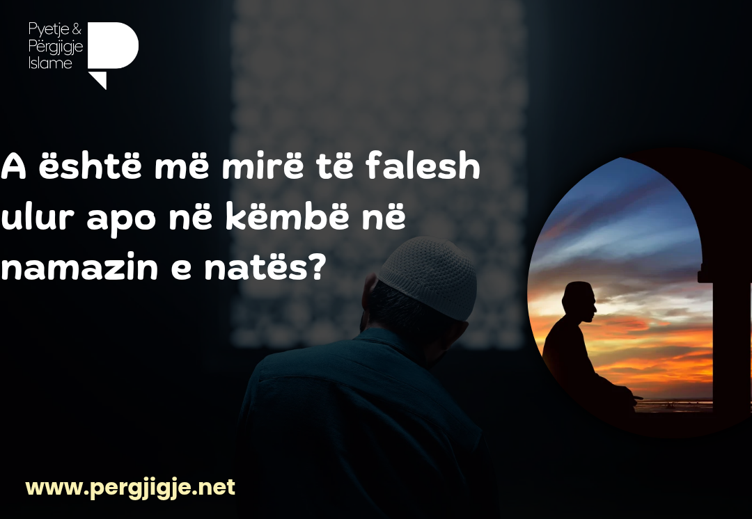 Pyetje: A është më e mirë të falemi ulur në namazin e natës pa ndonjë arsye dhe ta zgjasim namazin apo të falemi në këmbë por ta shkurtojmë atë?