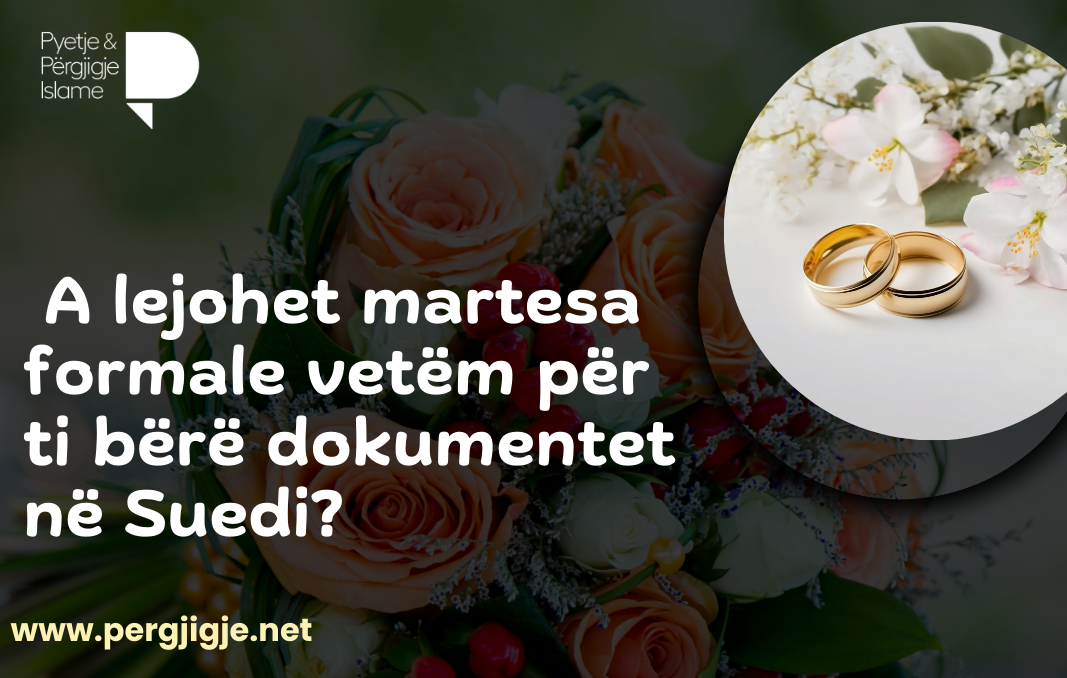 A lejohet të martohet një motër myslimane vejushë, e ndarë nga burri duke lidhur kurorë me një djalë mysliman në Suedi vetëm për të arritur në bashkim familjar dhe për të përfituar letrat e shtetit Suedez? Duke pasur parasysh se ata nuk do rrinë bashkë, nuk do flenë bashkë dhe nuk do kenë marrëdhënie bashkë asnjëherë, por martesa është formale thjesht për të përfituar letrat Suedeze dhe bashkimin familjar dhe më pas ndahen menjëherë.