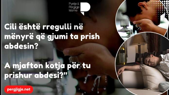 Pyetje: ”Cili është rregulli në mënyrë që gjumi ta prish abdesin? A mjafton kotja për tu prishur abdesi?”