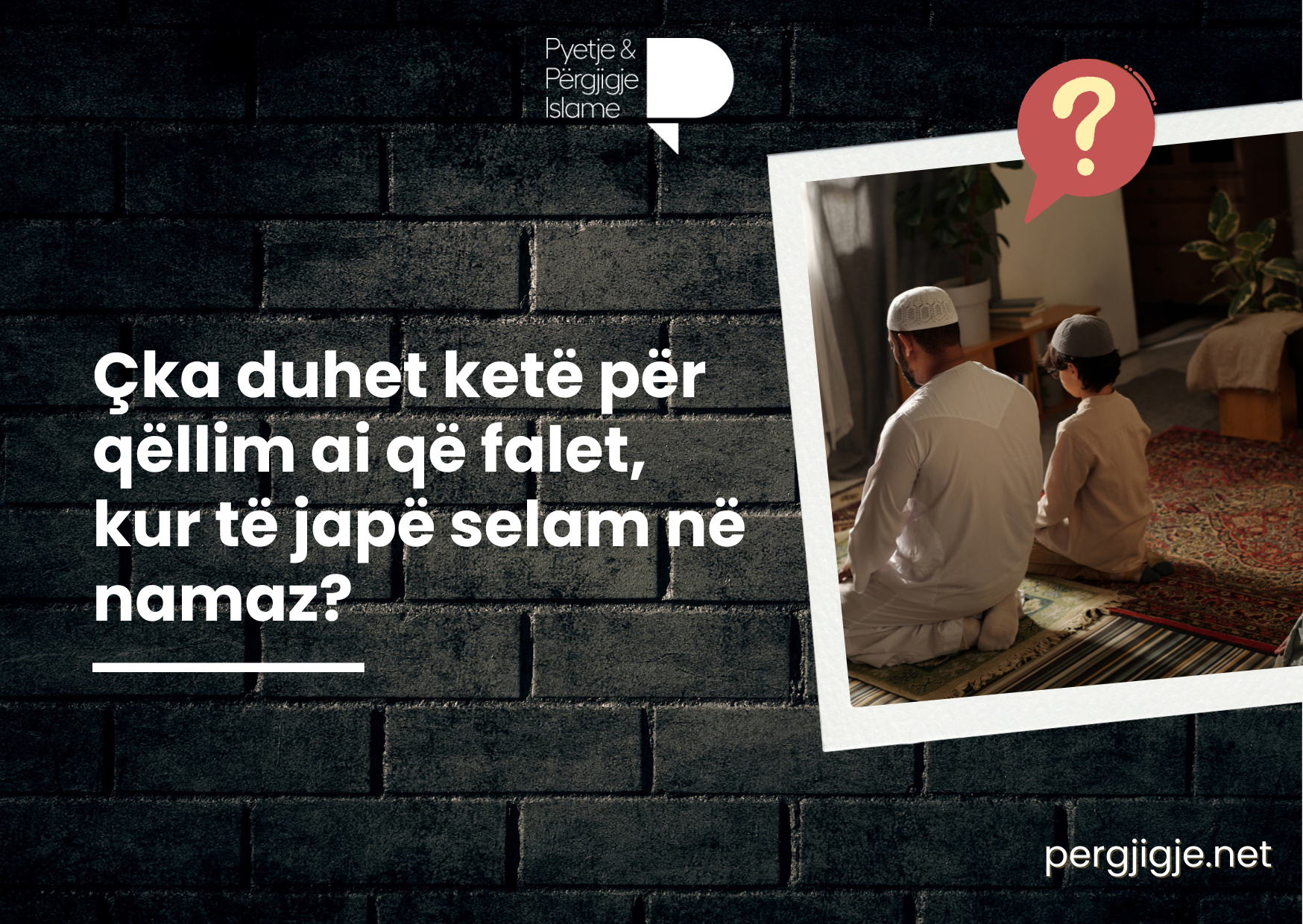 Pyetje: Kur themi es-selamu alejkum ue rahmetullah në fund të namazit, kujt ia themi këtë? A ua themi këtë engjëjve që gjenden në të majtën dhe në të djathtën tonë, apo u themi njerëzve që gjenden në të majtën dhe në të djathtë tonë?