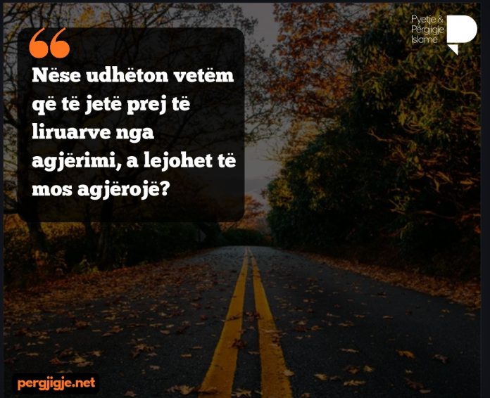 Udhëtari, nëse nuk ka për qëllim nga udhëtimi i tij të lirohet nga agjërimi, apo thënë ndryshe të merr rrugë në mënyrë që ti lejohet atij gjërat e ndaluara gjatë agjërimit, pra kush e synon këtë atëherë prishja e agjërimit për të është haram (e ndaluar) dhe është i obliguar të agjërojë, në qoftë se nuk është qëllimi i tij që ti merr lehtësimet për ta prish agjërimin atëherë ai mund të zgjedh mes agjërimit dhe prishjes, pa marr parasysh udhëtimi i tij, a është në kohë të gjatë apo të shkurtër. E njëjta dispozite vlen për atë që nuk ka orar të caktuar të udhëtimit apo është i vazhdueshëm në udhëtim, sikur pilotët, vozitësit e taksive, autobusëve, mbështetur në fjalën e Allahut: “Sa i përket atij që është i sëmurë ose gjendet në udhëtim e sipër (le të agjërojë më vonë) aq ditë sa nuk i ka agjëruar. Allahu dëshiron që t”jua lehtësojë dhe jo që t”jua vështirësojë”. BEKARE 185