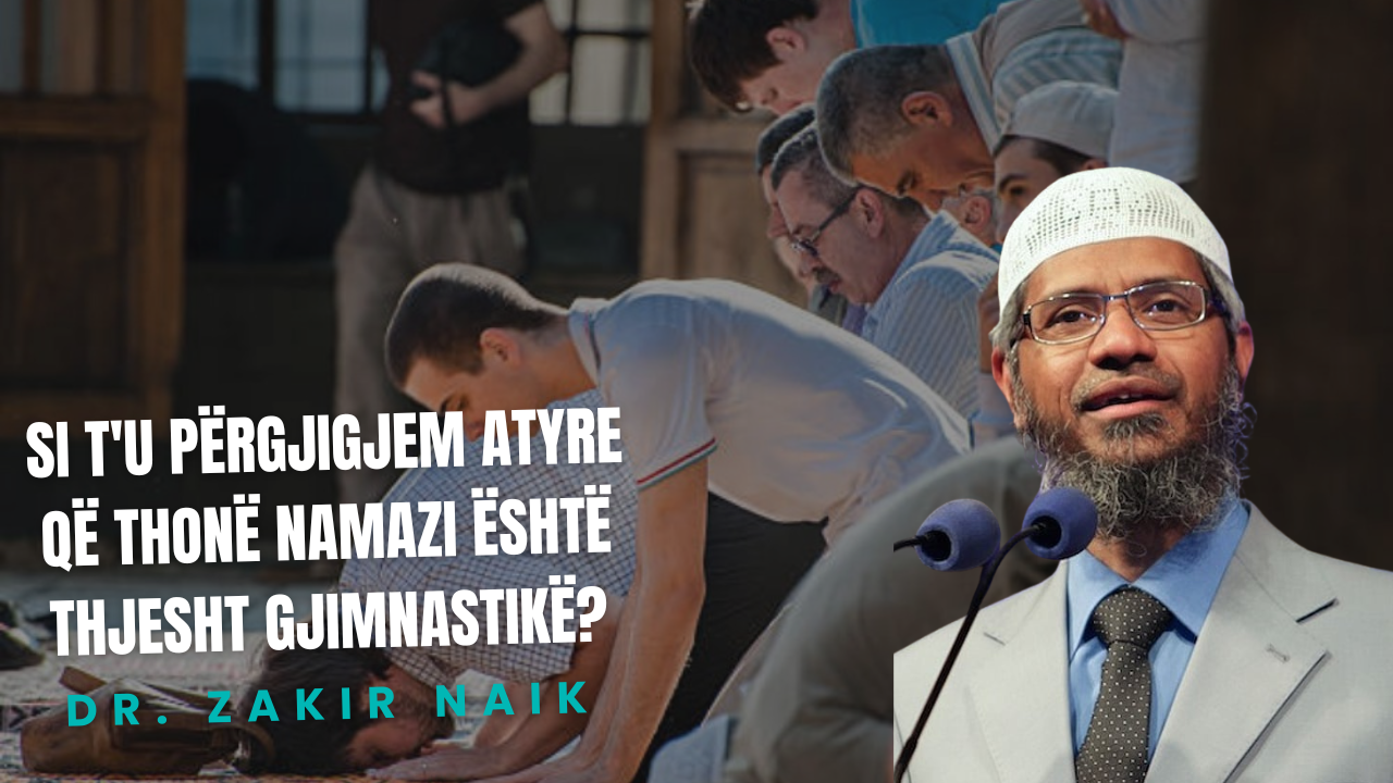 Dr. Zakir Naik: Namazi dhe gjimnastika janë larg sikurse Lindja dhe Perëndimi. Në namaz kultivohet shpirti dhe trupi, kurse në gjimnastikë trajnohet vetëm trupi. Në namaz arrihet qetësia dhe relaksimi shpirtëror. Në gjimnastikë kjo nuk arrihet. Në namaz lëvizjet bëhen pa u ngutur, ndërsa në gjimnastikë shpejtohen. Pas namazit ju jeni të pushuar, ndërsa pas gjimnastikës jeni të lodhur. Pas namazit keni vullnet për punë, ndërsa pas gjimnastikës nuk e keni atë. Namazin mund ta falin njerëzit e të gjitha moshave, ndërsa me gjimnastikë nuk mund të merret secili. Namazi është falas, ndërsa që të merreni me gjimnastikë, duhet të paguani mirë. Për namaz nuk ju duhet pajisje e veçantë, ndërsa për gjimnastikë ju duhen gjëra të ndryshme. Me namaz zhvillohen raportet shoqërore, vëllazëria, solidariteti, uniteti, ndërsa me gjimnastikë jo. Namazi ju nxit në vepra të mira dhe ju bën njerëz më të mirë, ndërsa gjimnastika nuk e ka këtë për qëllim. Dallimi kryesor është ai se ne me namaz e kërkojmë mëshirën e Allahut. Edhe pse gjimnastika e dikujt gjason me namazin, kjo nuk është e njëjtë, sepse ne në namaz e kemi nijetin (qëllimin) që t’ia shprehim Allahut të Lartësuar falënderimin dhe përuljen.